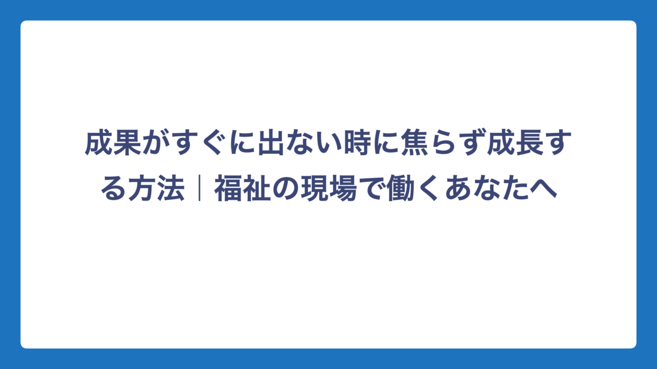今回は、成果がすぐに出ない時でも焦らず成長するための具体的な方法をご紹介します。